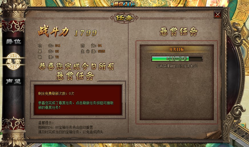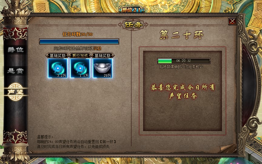 每天可以完成一定的循环杀怪任务,可以获得大量的经验奖励。